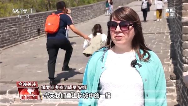 俄羅斯考察團成員 安娜:今天我們登上長城中的一段,我的感受非常棒。這段長城登起來不算太累,這點很好。