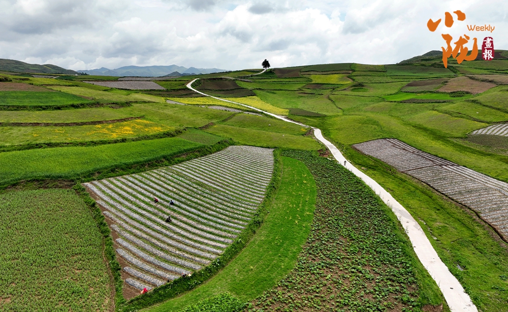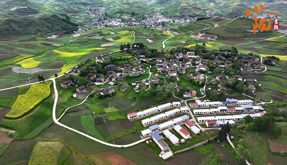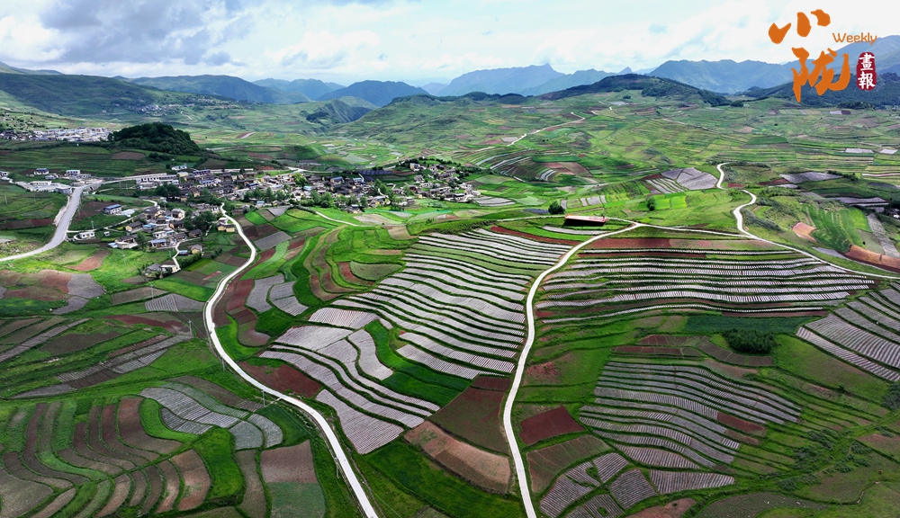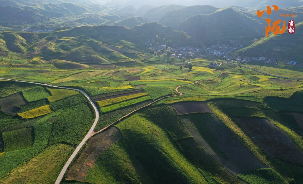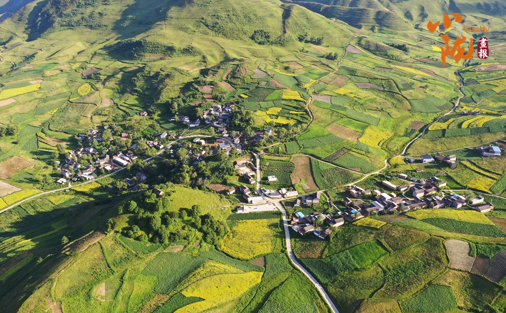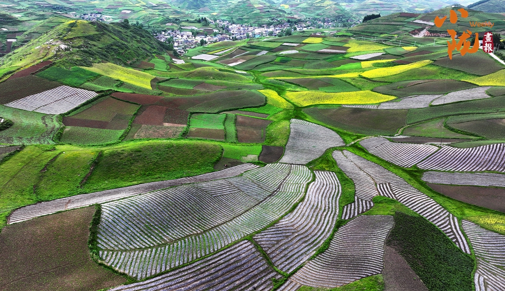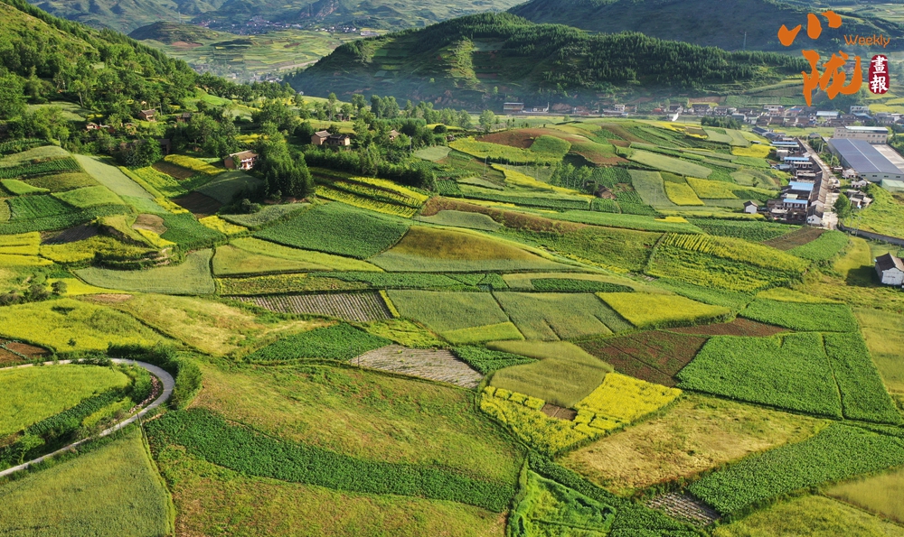 從空中俯瞰,阡陌縱橫與遠(yuǎn)處連綿起伏的青山,錯落有致的民居交相呼應(yīng),勾勒出一幅美麗的“田園畫卷”。