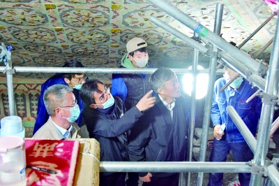 “我們有厚衣服,要不您穿著點?”壁畫保護修復(fù)技師柴宗香關(guān)心地問記者。