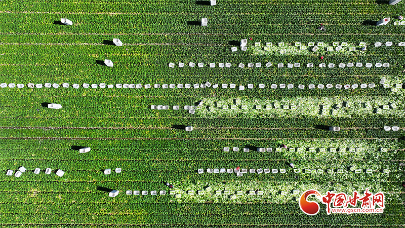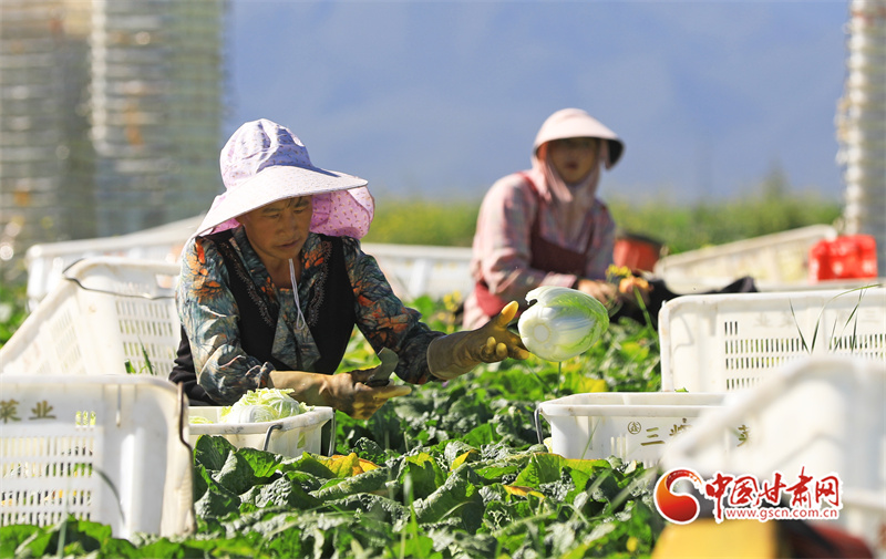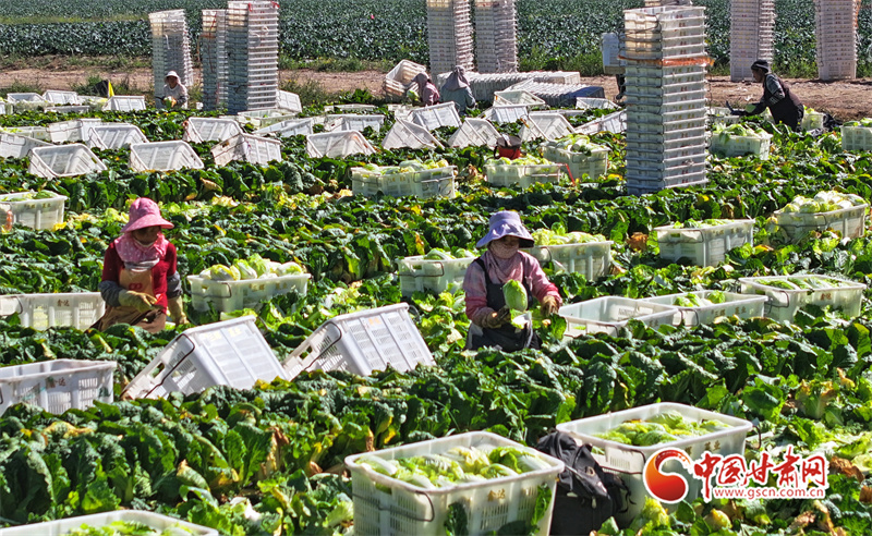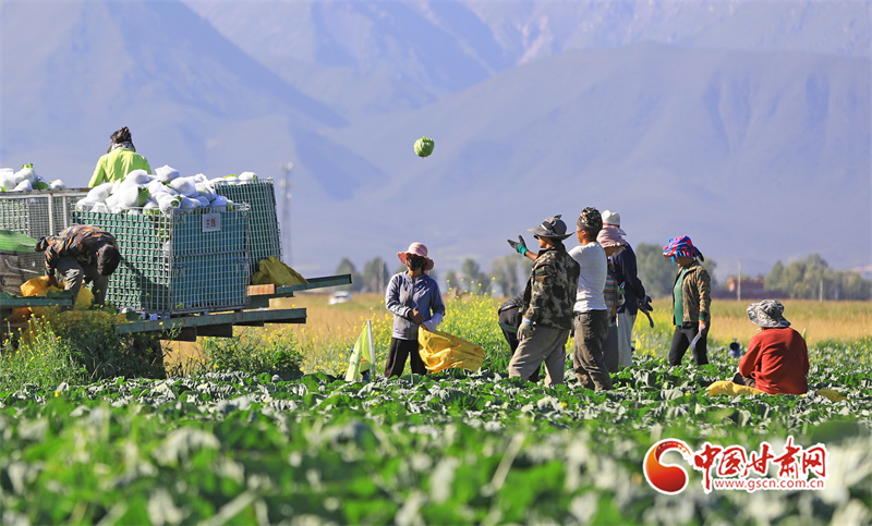 初秋,在民樂縣永固鎮(zhèn)八卦村高原夏菜種植基地,5000多畝娃娃菜、西蘭花、甘藍(lán)等高原夏菜已到收獲季,村民們正在忙著采摘、裝運(yùn)高原夏菜。
