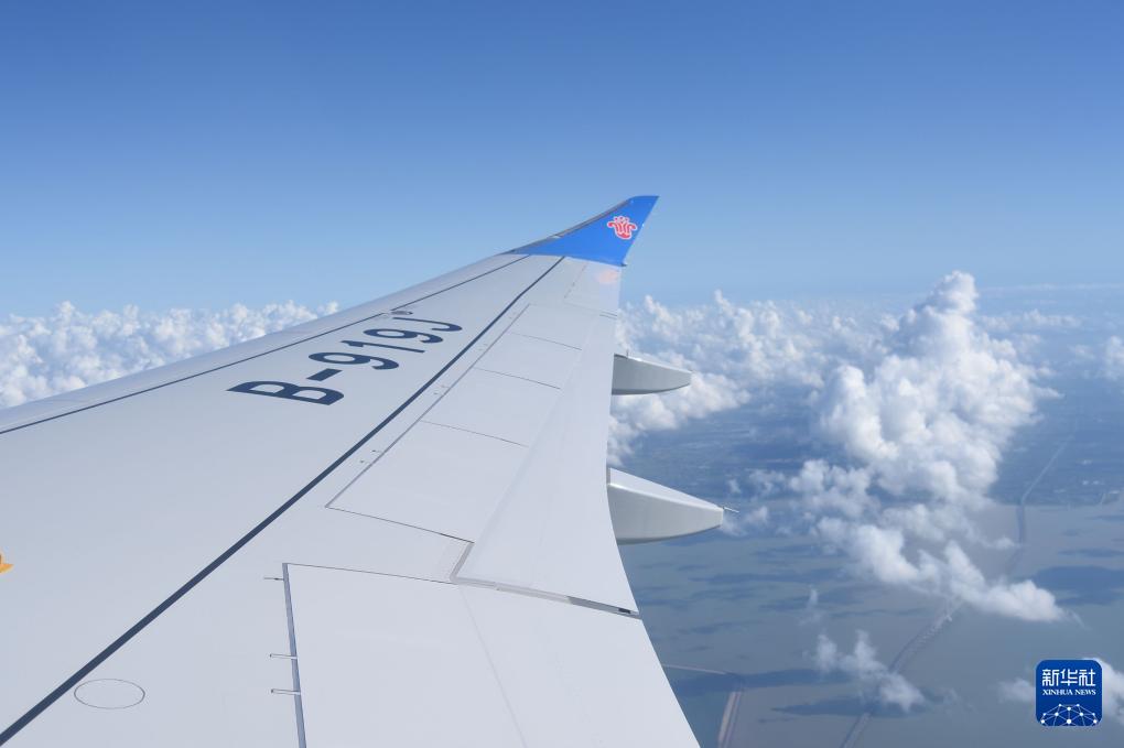8月29日,編號(hào)為B-919J的南航首架C919國產(chǎn)大飛機(jī)在從上海飛往廣州途中。新華社記者 田建川 攝