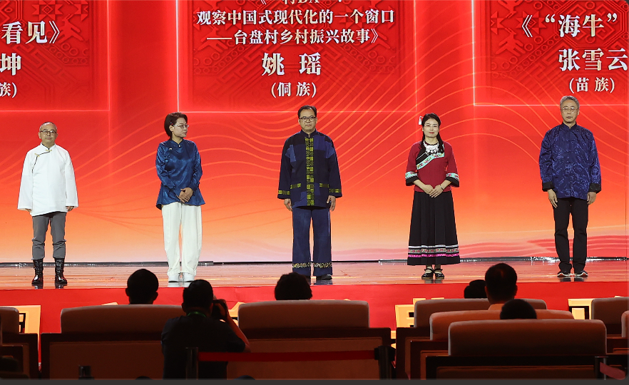 吉米平階、牛海坤、姚瑤、張雪云、周建新領(lǐng)取第十三屆全國(guó)少數(shù)民族文學(xué)創(chuàng)作駿馬獎(jiǎng)報(bào)告文學(xué)獎(jiǎng)。