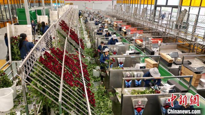 近年來,當?shù)靥岢?ldquo;打造魅力花都、建設(shè)公園城市”,聚焦“浪漫經(jīng)濟”,大力發(fā)展鮮切花產(chǎn)業(yè)。交通便利、人力資源富集是吸引這座“超級玫瑰工廠”國際鮮花港落戶臨夏的主因。