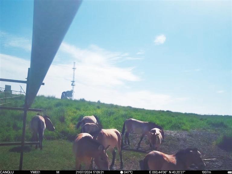 近日,甘肅敦煌西湖國(guó)家級(jí)自然保護(hù)區(qū)管護(hù)中心工作人員整理紅外相機(jī)拍攝畫(huà)面時(shí),發(fā)現(xiàn)拍攝到普氏野馬“哺乳”的清晰影像。畫(huà)面拍攝于今年7月下旬,有8匹普氏野馬繁殖群正在馬圈灣濕地的飲水泉附近活動(dòng),其中有一匹小馬駒滿足地吸吮著母馬的乳汁。據(jù)監(jiān)測(cè),該小馬駒出生于6月上旬,畫(huà)面中約已有一個(gè)半月大小,身體健康,毛色光亮。這個(gè)繁殖群領(lǐng)地范圍主要從馬圈灣西觀景臺(tái)至馬圈灣東高地,該區(qū)域可采食物種類豐富、水源充沛,是適合普氏野馬生活的美麗家園。普氏野馬是國(guó)家一級(jí)重點(diǎn)保護(hù)動(dòng)物,常棲息于山地、草原和荒漠,性機(jī)警、善奔跑。近年來(lái),隨著敦煌西湖保護(hù)區(qū)生態(tài)環(huán)境保護(hù)力度加大,生態(tài)環(huán)境質(zhì)量持續(xù)改善,群眾保護(hù)野生動(dòng)植物的意識(shí)不斷增強(qiáng),使野生動(dòng)物活動(dòng)范圍不斷擴(kuò)大,種群數(shù)量不斷增加。截至目前,敦煌西湖保護(hù)區(qū)內(nèi)普氏野馬種群數(shù)量已達(dá)166匹。