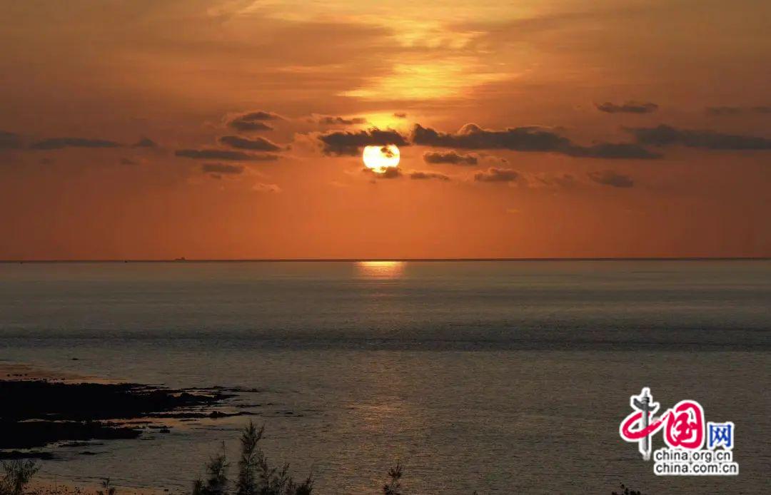 海南島西海岸線,北起儋州,南至樂東。儋州和臨高的海岸線朝向西北,并不正對(duì)西邊。從地圖上看,朝向正西方向的海岸線,應(yīng)該是從昌江棋子灣開始。確切地說,從棋子灣大角,海南島轉(zhuǎn)向了正西方向,直面海上落日。