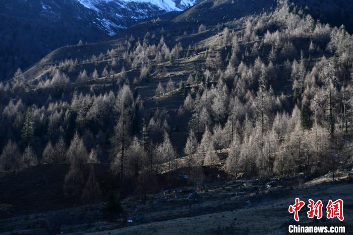 12月2日,四川省阿壩州小金縣四姑娘山雙橋溝植被夕陽(yáng)照射,形成一幅美麗畫(huà)卷。中新社記者 張浪 攝