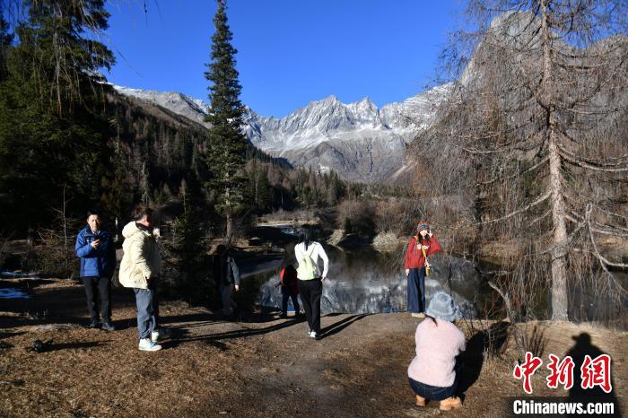 12月2日,位于四川省阿壩州小金縣的四姑娘山雙橋溝吸引游客游覽。隨著冬季到來(lái),四姑娘山雙橋溝多座山峰被皚皚白雪覆蓋,紅葉、雪山倒映在清澈的湖面形成一幅美麗畫(huà)卷,冰雪旅游逐漸火熱。中新社記者 張浪 攝
