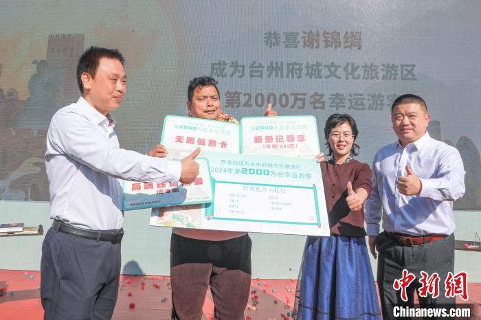 “恭喜你,成為臺(tái)州府城今年第2000萬名幸運(yùn)游客……”12月2日,位于浙江臺(tái)州臨海市的臺(tái)州府城文化旅游區(qū)在攬勝門廣場舉辦第2000萬名游客歡迎儀式。這是該景區(qū)開發(fā)以來,年度游客人次首次突破2000萬。