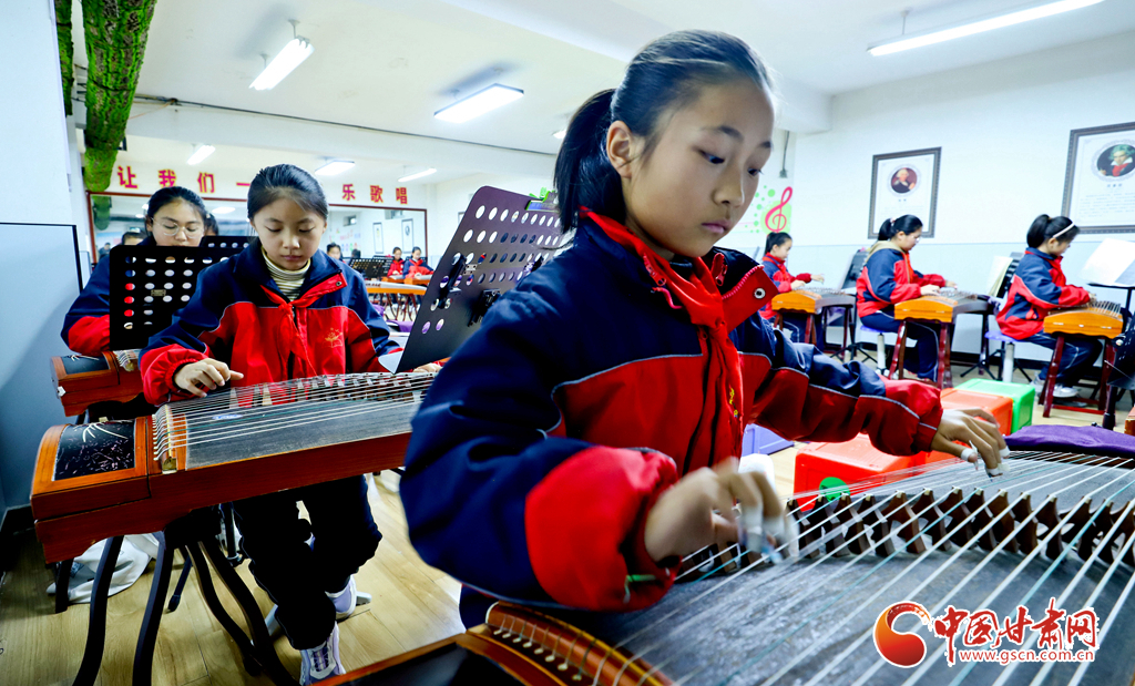 12月4日,張掖市高臺縣非遺保護中心的老師們來到解放街小學,向1800多名孩子們傳授戲曲表演、剪紙、古箏演奏等“非遺”技藝,讓更多師生了解、學習非遺。
