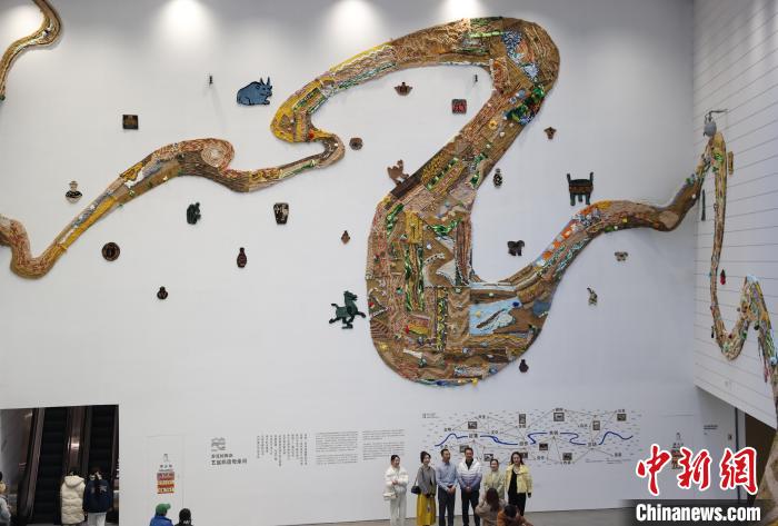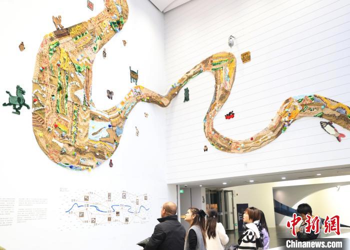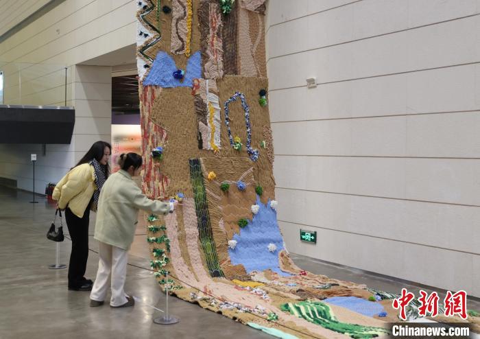 12月8日,市民在寧夏銀川當(dāng)代美術(shù)館欣賞“奔流的舞姿:藝起織造母親河”藝術(shù)展。當(dāng)日,“奔流的舞姿:藝起織造母親河”公益項(xiàng)目藝術(shù)展在銀川當(dāng)代美術(shù)館正式對(duì)公眾開放。該項(xiàng)目匯聚了黃河兩岸200余位織手的巧作,按照黃河特點(diǎn)和視覺審美拼接和織造,織造出一個(gè)極具視覺效果的“大河”,通過藝術(shù)的橋梁,展示奔涌黃河的優(yōu)美舞姿和不息精神,同時(shí)激發(fā)社會(huì)各界對(duì)黃河生態(tài)保護(hù)的共識(shí)與行動(dòng)。中新社記者 于晶 攝
