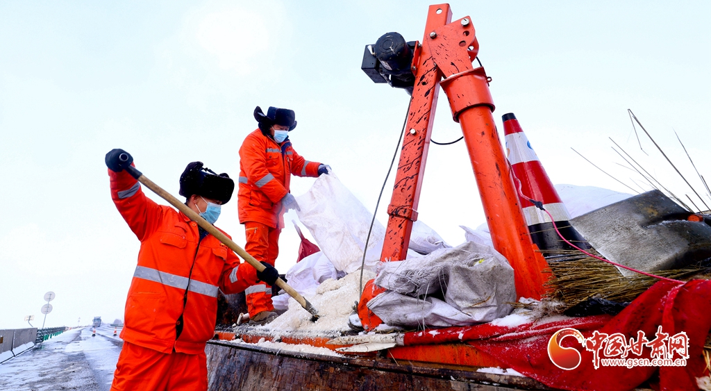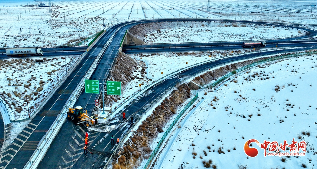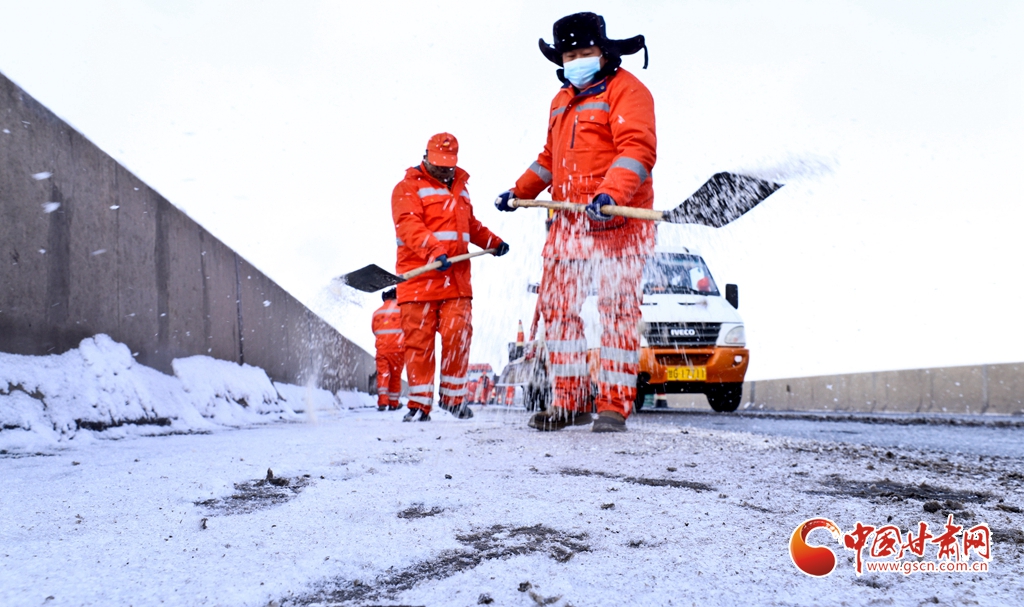 12月10日,張掖公路事業(yè)發(fā)展中心山丹公路段的養(yǎng)護工人們正在進行除雪工作,確保公路的暢通。