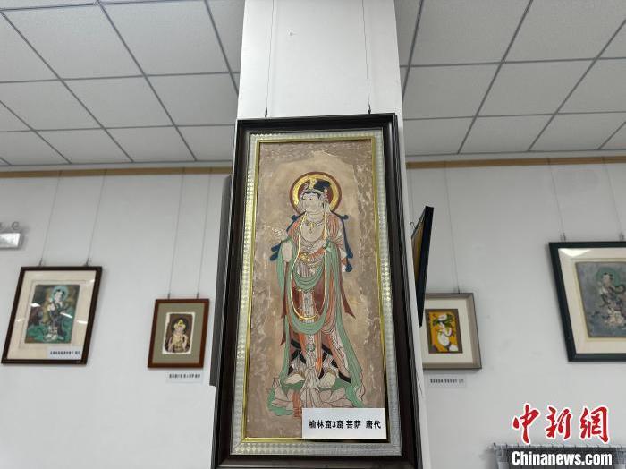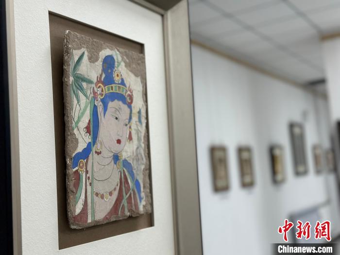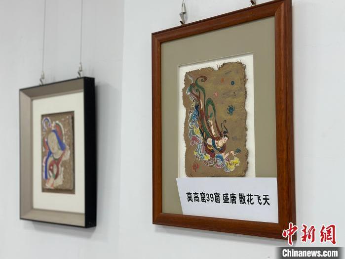 12月17日,由蘭州市七里河區(qū)委宣傳部、七里河區(qū)文體旅局聯(lián)合舉辦的“大漠孤陽映彩霞 敦煌神韻美如畫”新時代文明實踐主題活動暨敦煌巖彩畫書畫藝術展拉開帷幕。圖為展出的敦煌莫高窟壁畫題材巖彩畫。楊娜 攝