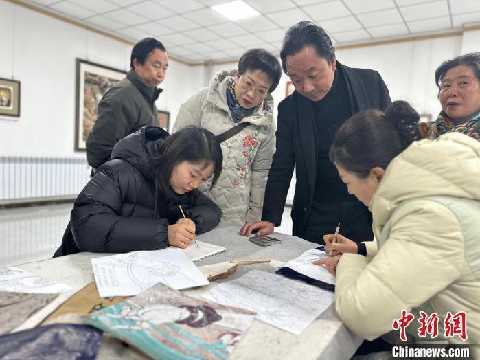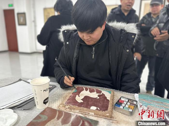 12月17日,由蘭州市七里河區(qū)委宣傳部、七里河區(qū)文體旅局聯(lián)合舉辦的“大漠孤陽映彩霞 敦煌神韻美如畫”新時代文明實踐主題活動暨敦煌巖彩畫書畫藝術展拉開帷幕。圖為繪畫愛好者現(xiàn)場學習繪制巖彩畫。楊娜 攝