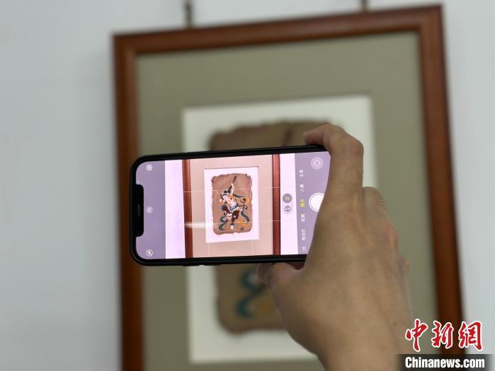 12月17日,由蘭州市七里河區(qū)委宣傳部、七里河區(qū)文體旅局聯(lián)合舉辦的“大漠孤陽映彩霞 敦煌神韻美如畫”新時代文明實踐主題活動暨敦煌巖彩畫書畫藝術展拉開帷幕。圖為參觀者拍攝展出的“反彈琵琶”題材巖彩畫。楊娜 攝