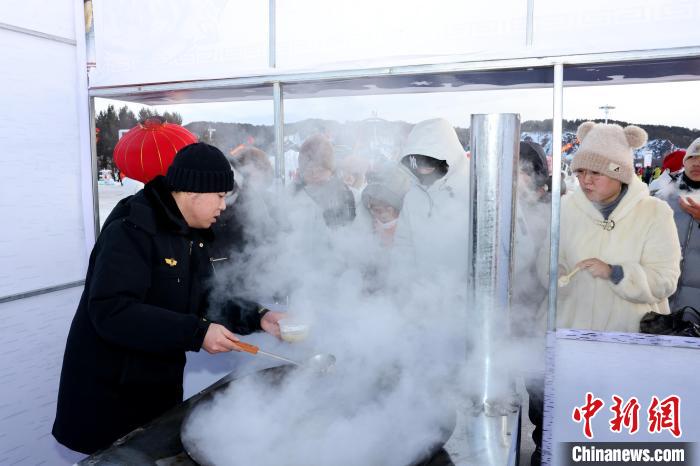 除了豐富的冰雪游樂(lè)項(xiàng)目,北極村七星廣場(chǎng)還設(shè)有非遺民俗文化展區(qū)和東北特色美食區(qū),讓游客們?cè)趨⑴c冰雪活動(dòng)的同時(shí),還能欣賞樺樹(shù)皮畫(huà)、手工編織等具有地方特色的非物質(zhì)文化作品,品嘗江水燉江魚(yú)、鐵鍋燉大鵝等東北特色美食。