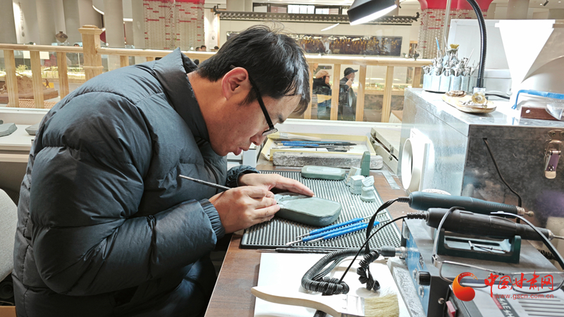 踏入展館,映入眼簾是一幅由白牦牛角雕刻而成的16米長3D立體《清明上河圖》,由創(chuàng)作者劉金祿耗費25年的光陰與心血,將北宋時期繁華市井的風(fēng)貌完美展現(xiàn),令人震撼。