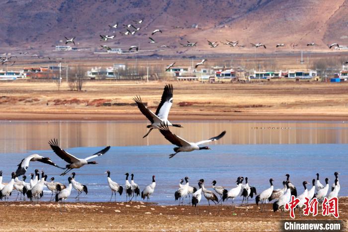 黑頸鶴是中國國家一級保護動物,是唯一生活、繁殖在高原的鶴類,被藏族民眾譽為“神鳥”。拉薩市林周縣、墨竹工卡縣等拉薩河流域是黑頸鶴的主要越冬地之一。近年來,西藏自治區(qū)多措并舉實施生態(tài)建設工程,黑頸鶴數(shù)量逐年遞增,目前西藏黑頸鶴數(shù)量超過萬只。