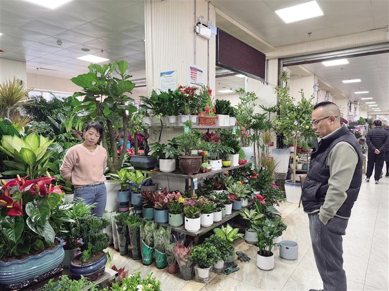 在一旁,不少市民一邊挑選盆栽,一邊向老板討教養(yǎng)花小技巧。“這個(gè)君子蘭怎么才能開花?我的葉片為什么沒有你的這么亮呢?”花市經(jīng)營(yíng)者林女士告訴記者,“像君子蘭等葉片花,可以用啤酒擦拭葉片,這樣會(huì)讓其更加明亮有光澤;同時(shí),植物也是生命,需要攝入相應(yīng)的營(yíng)養(yǎng)元素才能長(zhǎng)勢(shì)更好,可以嘗試將雞蛋殼揉碎后鋪進(jìn)土壤內(nèi)。”記者了解到,在價(jià)格方面,綠植盆栽價(jià)格較以往波動(dòng)不大,梔子花、茉莉花、薄荷等小型綠植均價(jià)在35元上下,桂花、杜鵑花等在幾十到幾百元不等。