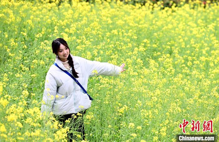 3月16日,市民在油菜花中拍照留念。春日,福州花海公園魯冰花、小蒼蘭、油菜花等鮮花盛放,吸引了許多民眾前來漫步賞花,享受春天美好時光。中新社記者 張斌 攝