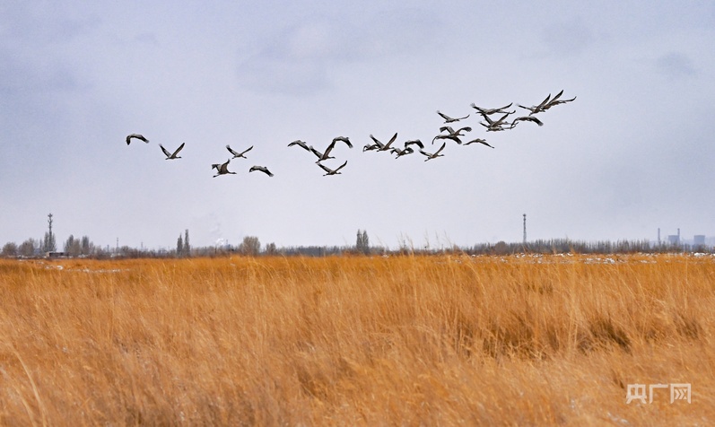千只灰鶴在嘉峪關(guān)草湖國家濕地公園振翅高飛(央廣網(wǎng)發(fā) 嘉峪關(guān)市融媒體中心供圖)