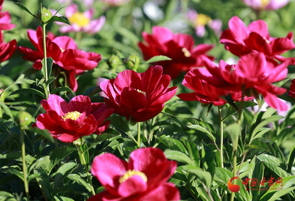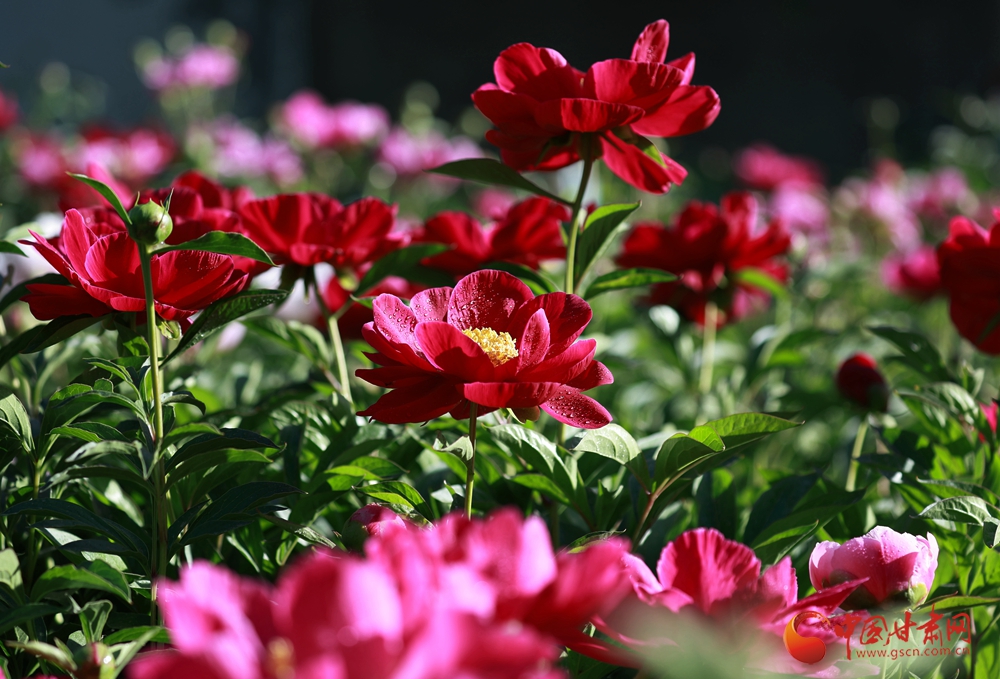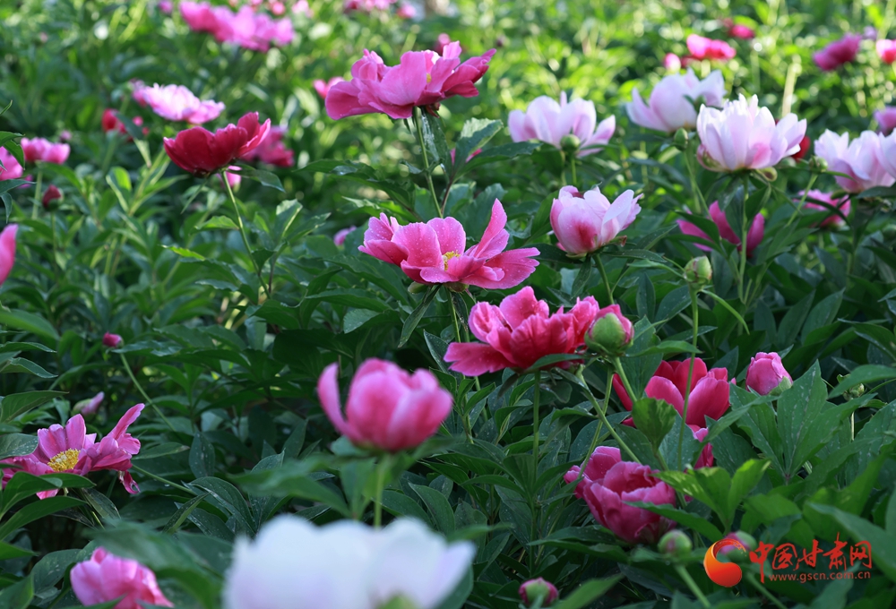 近日,金塔縣芙蓉苑公園的芍藥花迎來盛花期,大片芍藥花嬌艷綻放,層層疊疊、錯落有致,紅的似火、粉的如霞、白的像雪,明艷動人的色彩交織在一起,勾勒出一幅絕美的田園初夏風景圖。