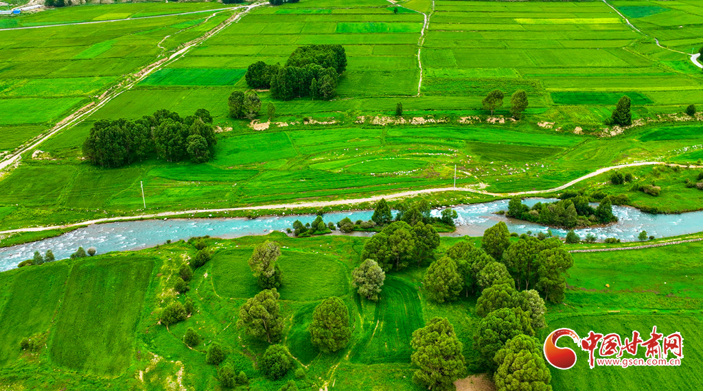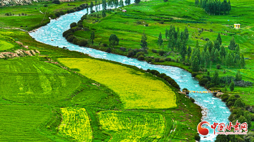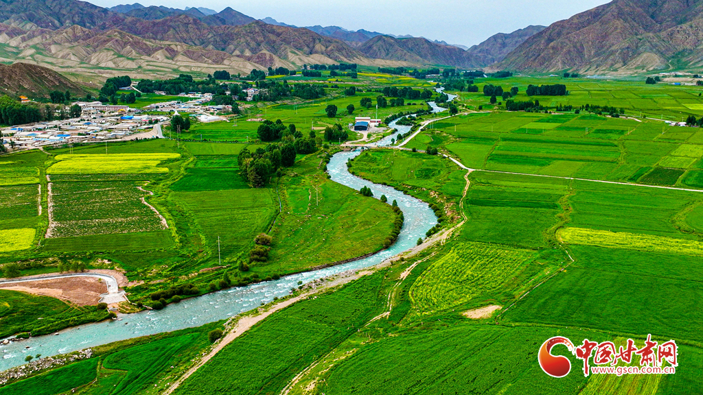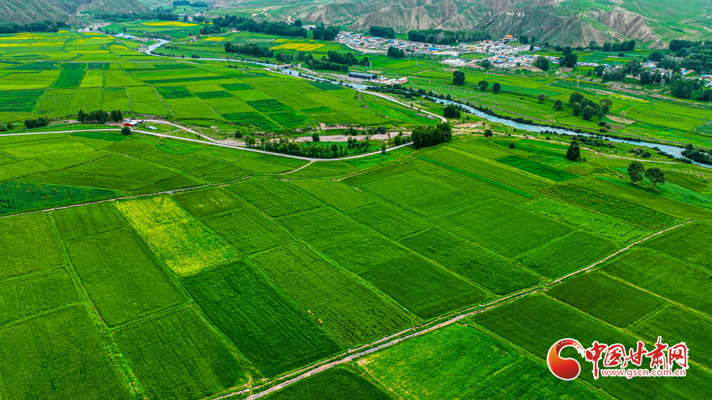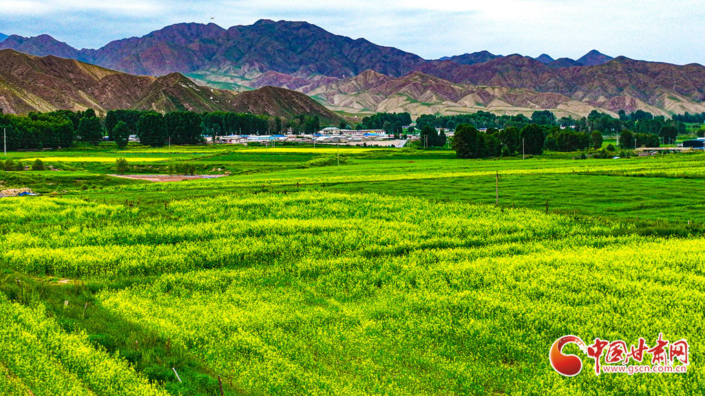 7月14日,一場小雨過后,張掖市肅南裕固族自治縣皇城鎮(zhèn)泱翔片區(qū),萬畝麥田泛黃、油菜花盛開如金。微風(fēng)吹拂,麥浪翻涌花香浮動。遠(yuǎn)眺祁連山巍峨聳立,近觀民居錯(cuò)落有致,構(gòu)成一幅和諧的畫卷。