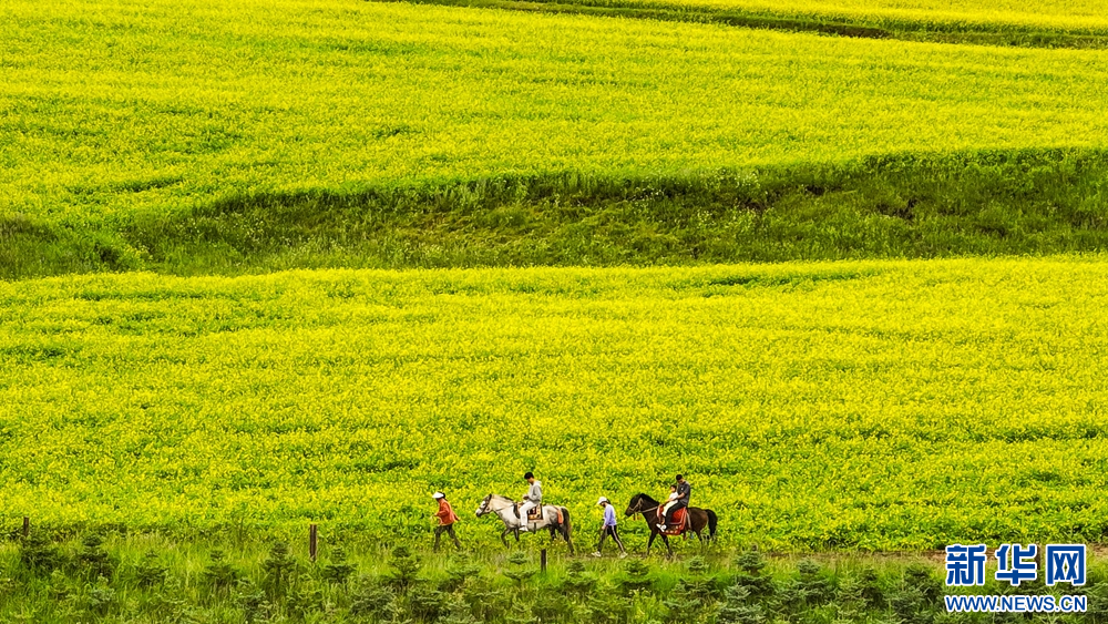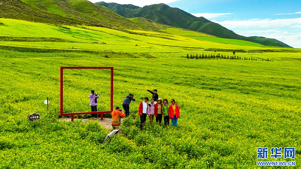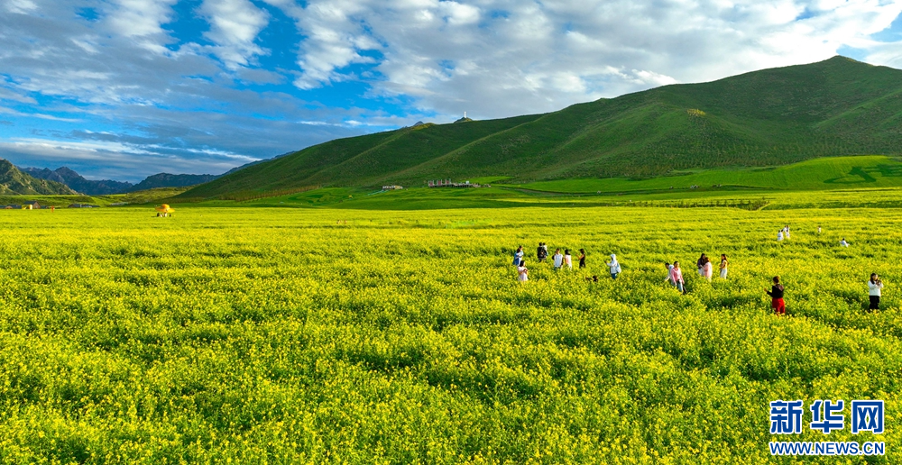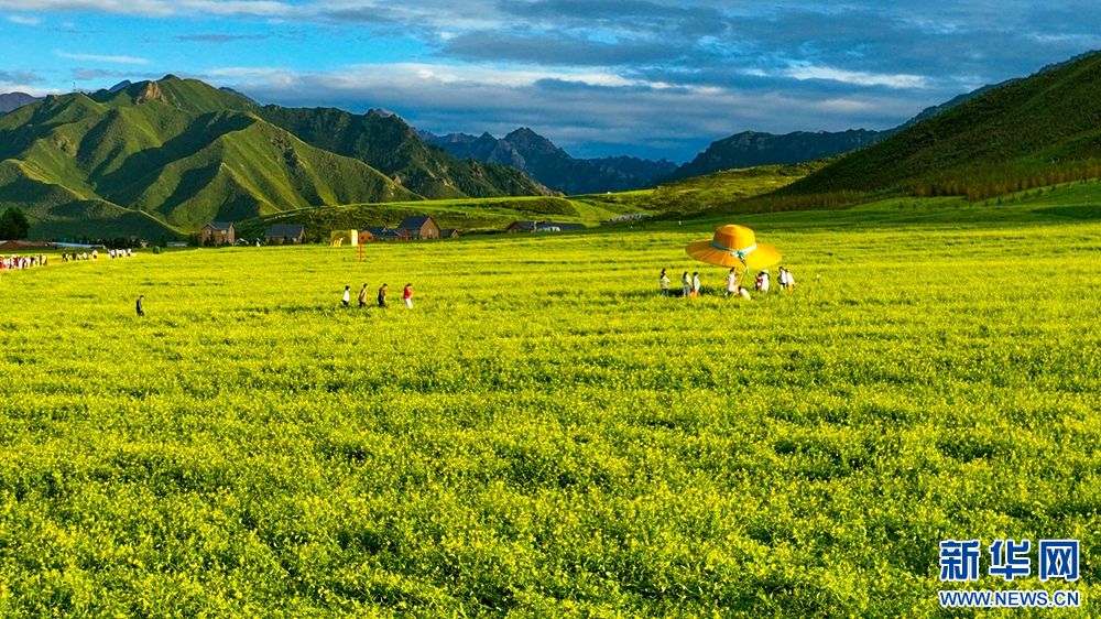 連日來,位于祁連山下的甘肅省張掖市民樂縣扁都口景區(qū)萬畝油菜進入盛花期。金黃的油菜花海與草原綠野相連,空氣中彌漫的淡淡花香,醞釀山川,醉了游人。新華網(wǎng)發(fā)(王將 攝)