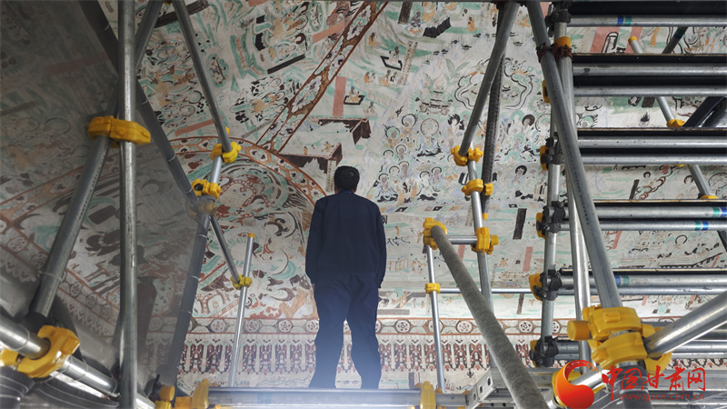 10月31日,由中央網(wǎng)信辦網(wǎng)絡(luò)傳播局、國(guó)家文物局政策法規(guī)司指導(dǎo),中國(guó)互聯(lián)網(wǎng)發(fā)展基金會(huì)特別支持,甘肅省委網(wǎng)信辦、省文物局主辦,張掖、嘉峪關(guān)、酒泉市委網(wǎng)信辦與敦煌研究院、中國(guó)甘肅網(wǎng)、鳳凰網(wǎng)甘肅頻道共同承辦的“何以中國(guó)|壁畫里的中國(guó)·當(dāng)AI遇見小飛天”網(wǎng)絡(luò)主題宣傳活動(dòng)走進(jìn)敦煌研究院,采訪在莫高窟修壁畫的青年修復(fù)師唐青松。
