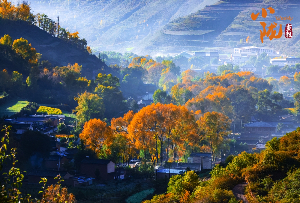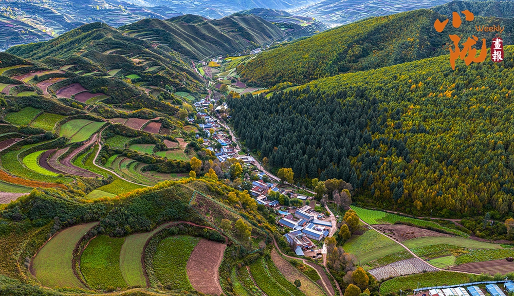 秋末初冬,多彩秋色映照著美麗的臨潭。五彩斑斕的梯田縱橫交錯、順山而變,宛如一條條彩帶,在山間飛舞。村落點綴其間、古樸自然,田園生活詩意盎然。