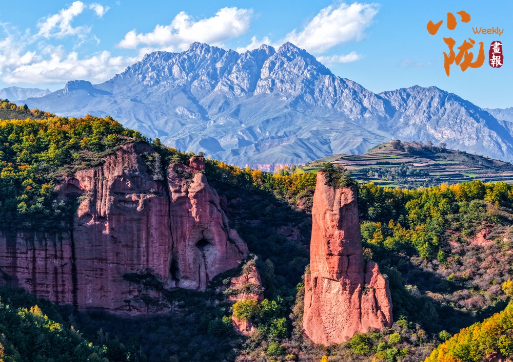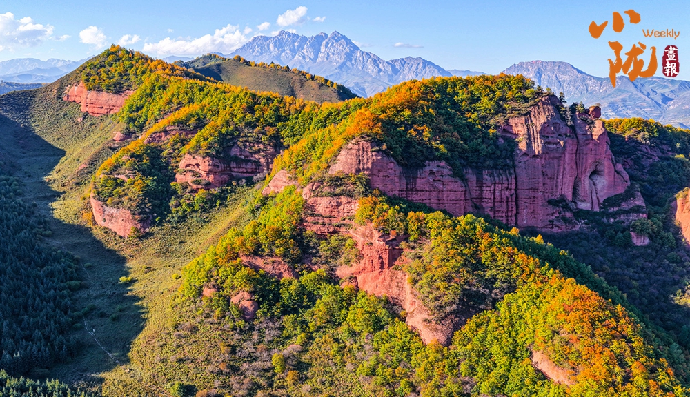 俯瞰整個冶力關(guān),遠(yuǎn)處的雪峰在陽光照耀下泛著銀光,與近處的彩林形成鮮明對比,宛如一幅氣勢磅礴的山水畫卷。
