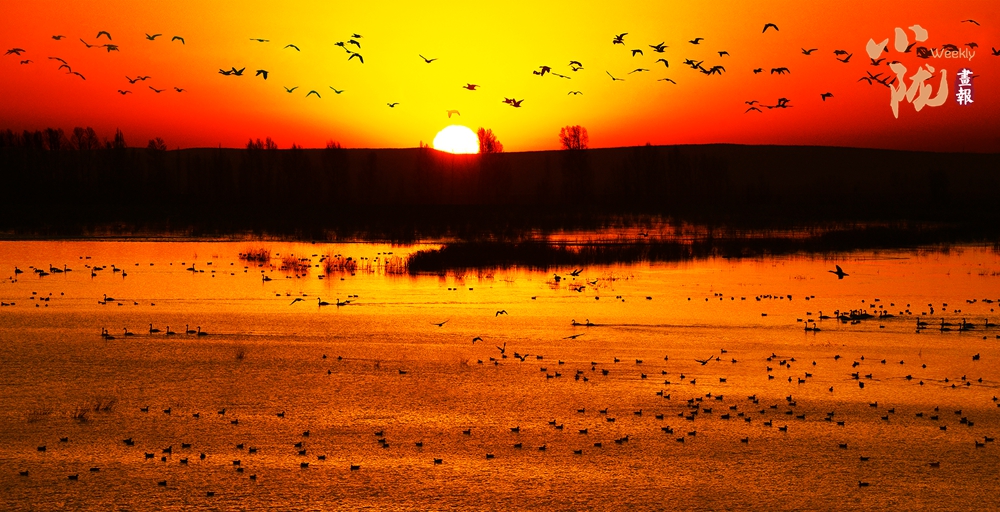 在寒潮來臨之前,成群的候鳥如約而至,它們穿越重山、飛越萬里,只為在這片濕地上安家落戶。每年,這里都會(huì)聚集起100余種4萬多只的水鳥,為這片自然之地增添了一抹絢爛的色彩。