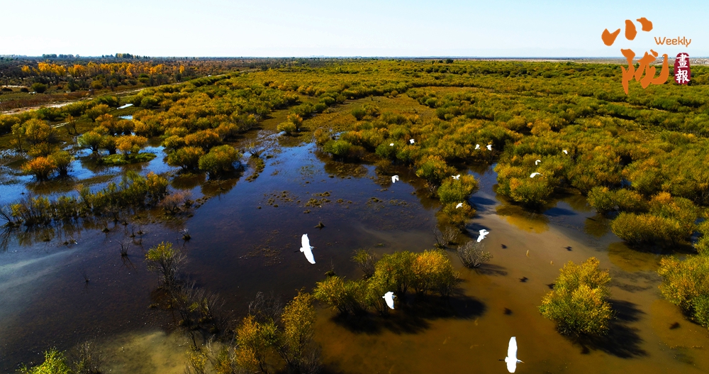每到冬季,濕地的胡楊換上金黃盛裝,與穿梭其間的湖水、溫暖柔和的蘆葦蕩,繪制成一幅水墨長(zhǎng)卷,將初冬的浪漫鋪滿天地。