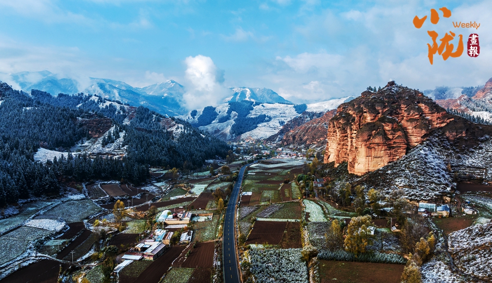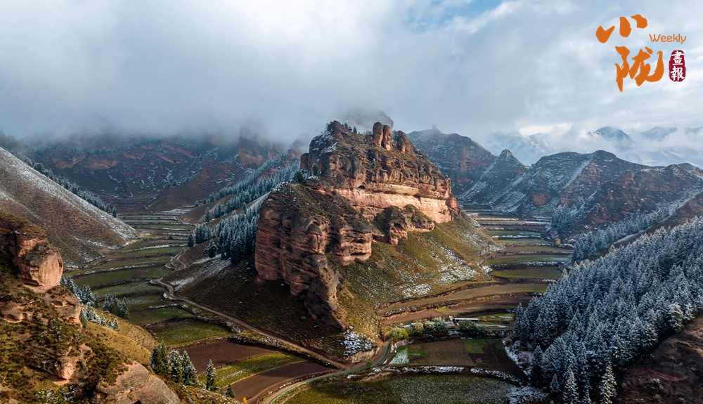 雪后天晴,煙波浩渺,山色空蒙,朱紅色的丹霞與蔥郁的森林、皚皚白雪相映成趣,展現(xiàn)出冬日里別樣的壯麗與靜謐。