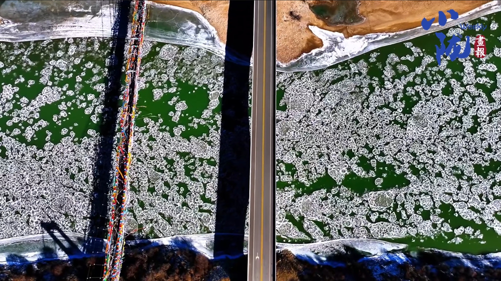 冰河如一道銀練,線條簡勁飽滿,在雪原上留下凝練的筆痕,每一處轉(zhuǎn)折,皆蘊(yùn)著大地深藏的遒勁力道與蒼茫氣象。