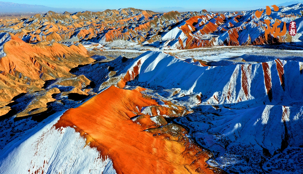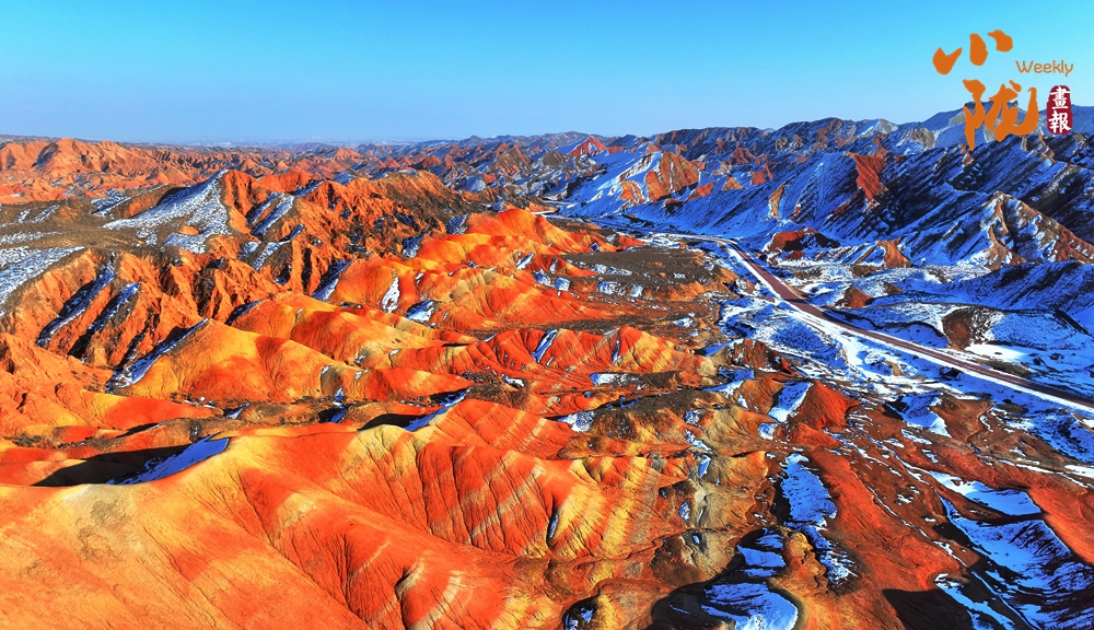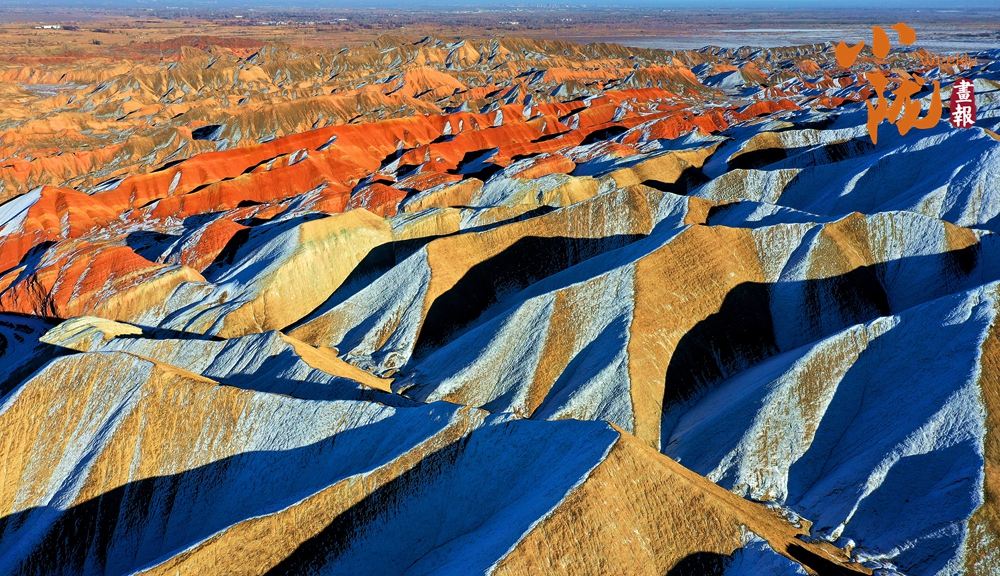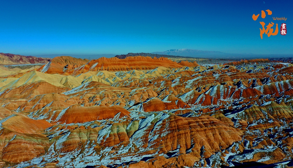 一場(chǎng)春雪后,臨澤七彩丹霞褪去了往日的張揚(yáng),化身為一幅“半是火焰、半是海”的水墨丹青長卷。